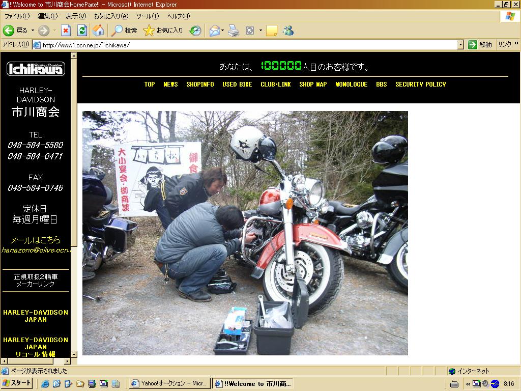 5 月 26 日 ( 木曜日 ) に市川商会さんのホームページの 記念すべき”十万人アクセス”をゲットする事ができました。 記念に雨宮さんから缶入り T シャツプレゼントして頂きました。 |