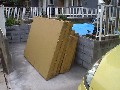 設置予定スペースに運び込んだものの配送業者さんが帰った後に これじゃ組立てが開始できないことに気がつきました。 (^^; 内容物の確認と一人でどこまでできるかの確認を含めて 少しづつ移動を試みてみる事にしました。 どうにか全ての梱包を開けて内容物を全て確認したところ 正面のドア以外は一人で移動させる事が可能です。 天気予報を信じて手伝いを頼んでいなかったのですが、 なんとか一人でできそうなので時間のかかるのを承知で 組立てを開始する事にしました。 正面ドアだけは慎重に少しづつ組立てに支障ない位置まで移動させて 夕方帰宅予定の奥さんに手伝ってもらい組付けるところまで行う事が目標です。 |